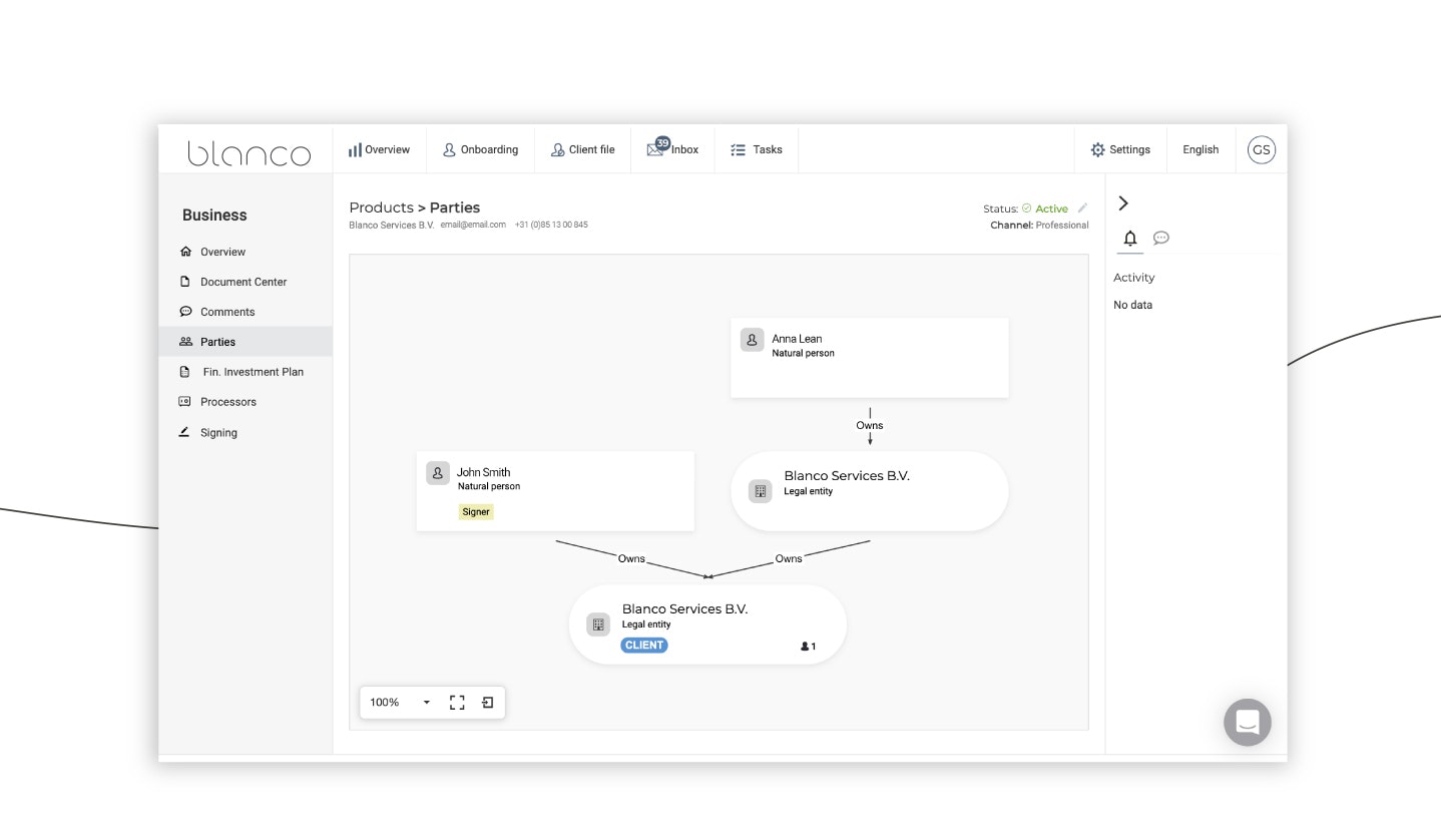 Het is nu mogelijk om de onboarding van een rechtspersoon zonder natuurlijk persoon te voltooien. Dit kan alleen indien de ondertekeningsmodule gedeactiveerd is, aangezien een natuurlijk persoon altijd vereist is voor ondertekening.